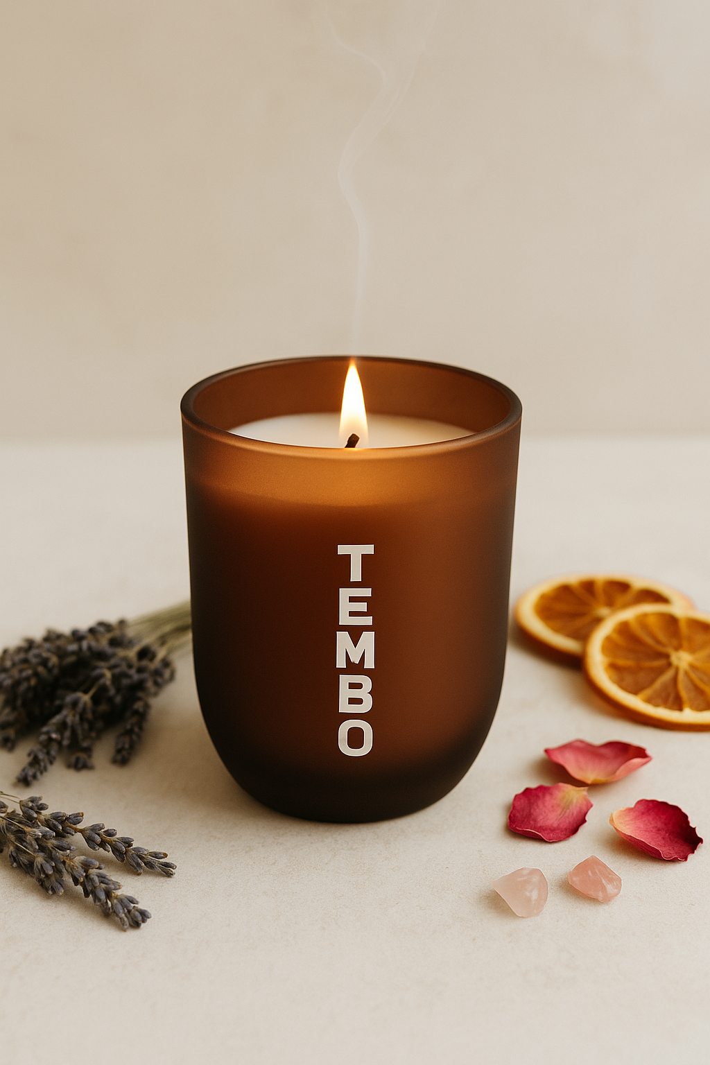 El ritual contiene: una vela de cera de soja, una bruma con mezcla de aceites esenciales, una infusión, una piedra y unas instrucciones.